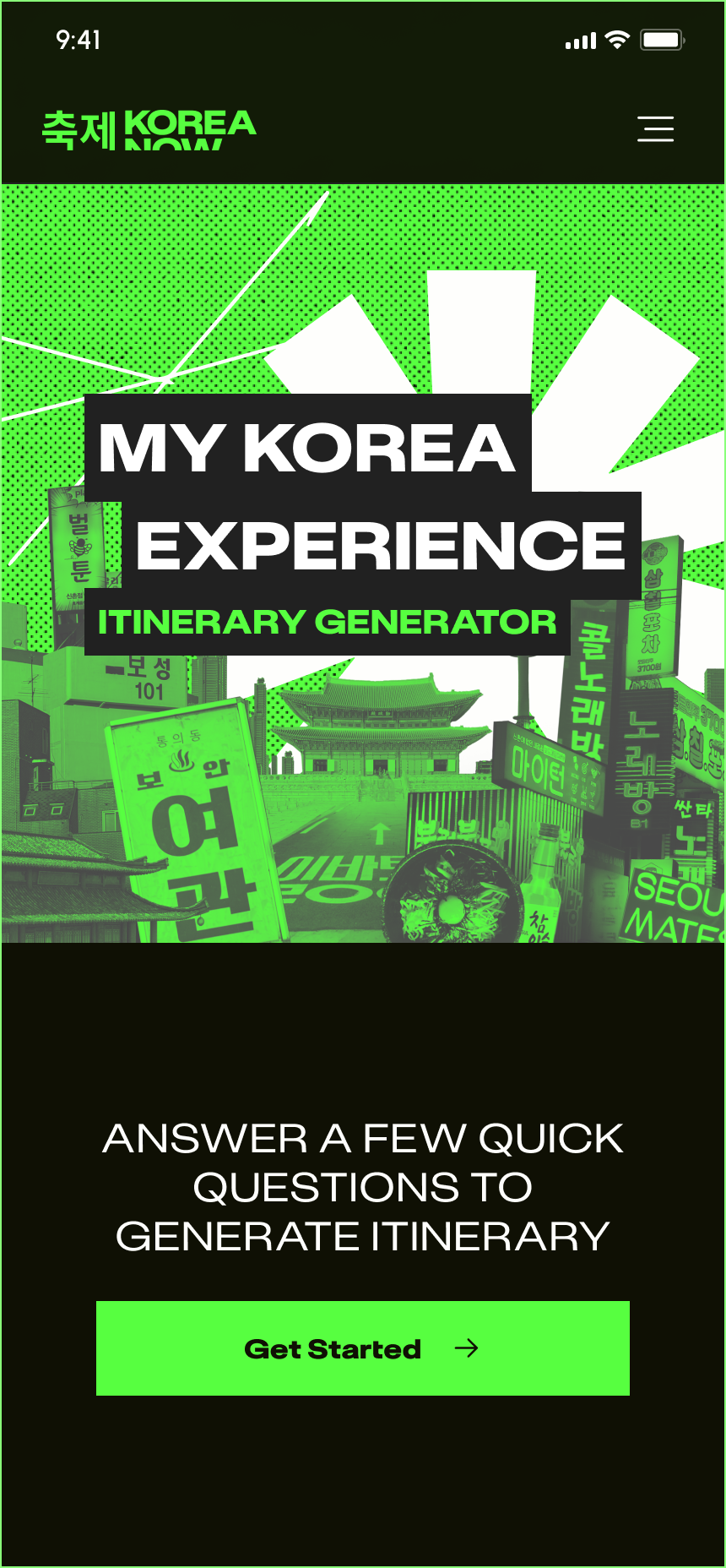 The AI-powered itinerary generator went through multiple iterations, refining how users could explore South Korea based on their interests. Initially, it pulled recommendations based on user likes, but as the site structure evolved to meet the onsite festival constraints, a more guided approach made the most sense.