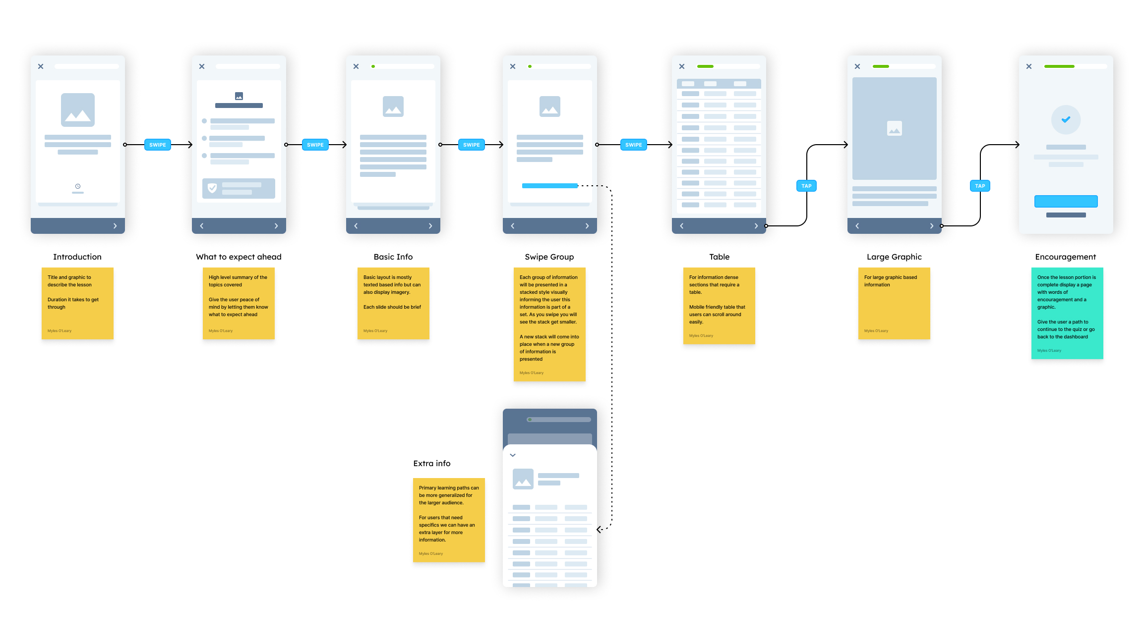 Users swipe through lessons and have the opportunity to engage with extra details and helpful tips along the way with layers of information.