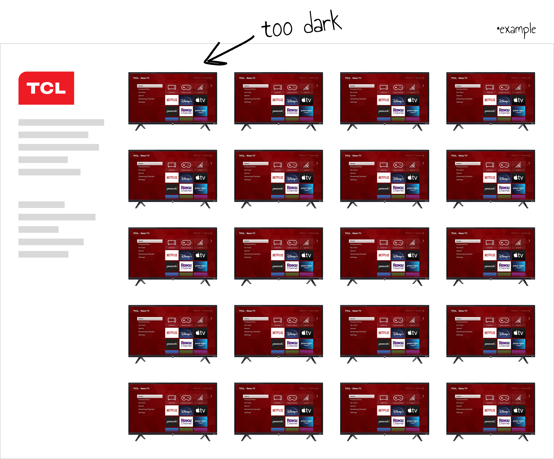 Another issue we identified was the repeated TCL x Roku images—dark and heavy, they dominated pages with up to 25 identical thumbnails, making the layout feel dense and repetitive.