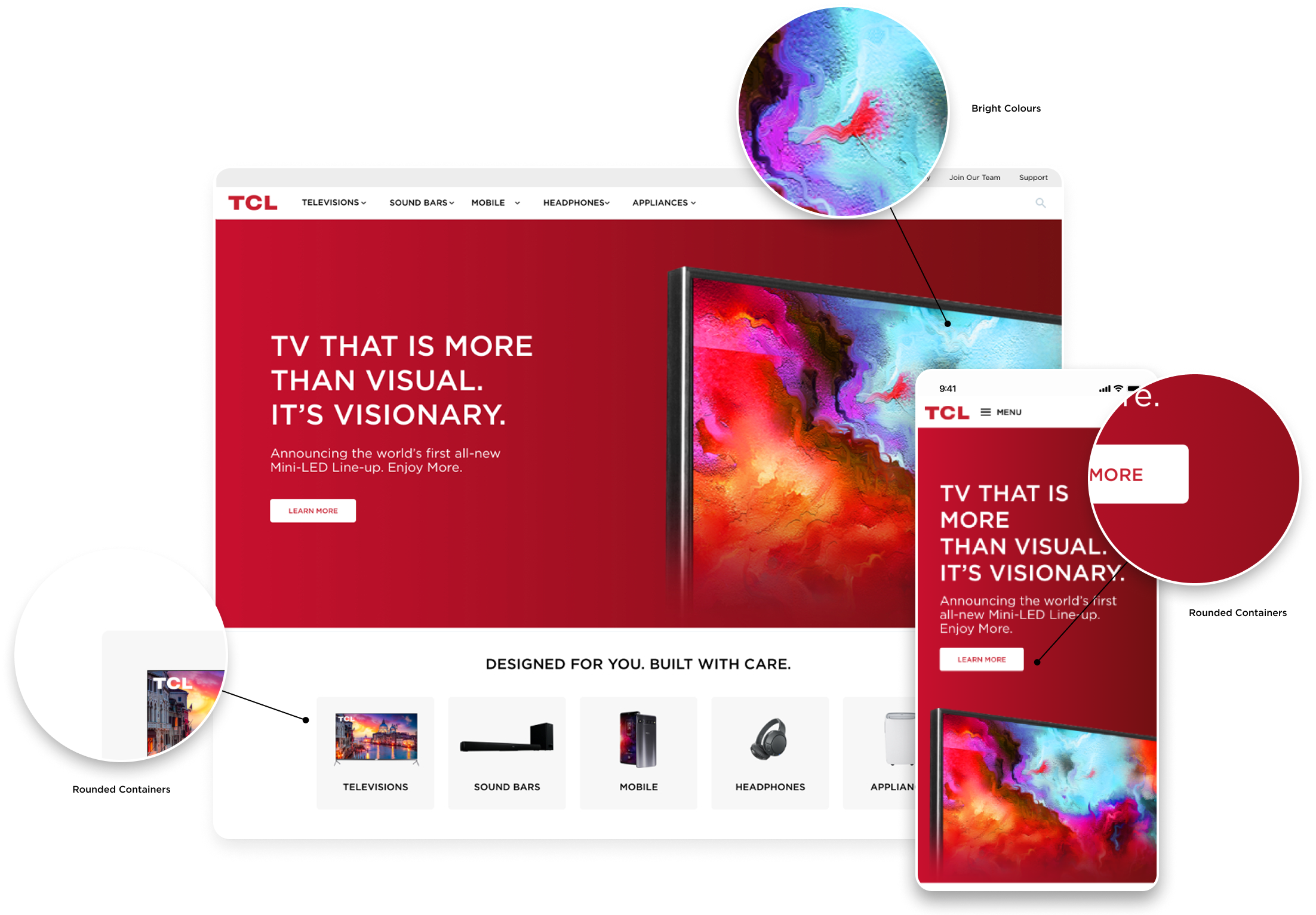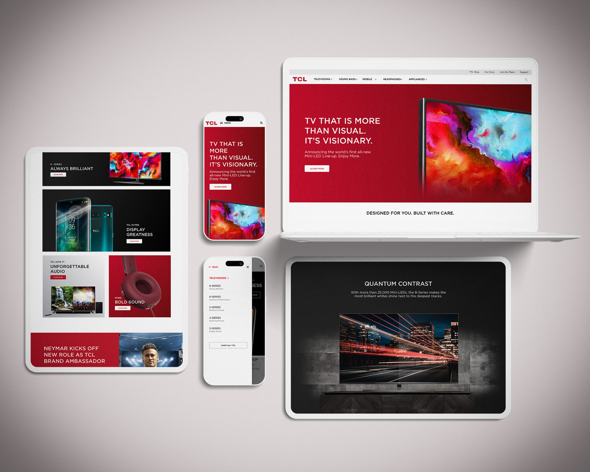 The 2018 redesign remains largely unchanged, with only minor updates over the years. The design continues to be a vibrant, engaging experience that makes it easy for customers to explore TCL’s products.